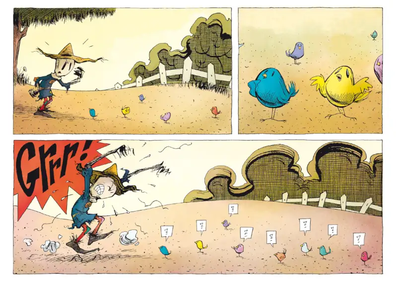 Fable poétique, L’émouvantail repose sur un personnage charmant, bienveillant et altruiste. En un mot : humain ! – Damien Canteau, Comixtrip