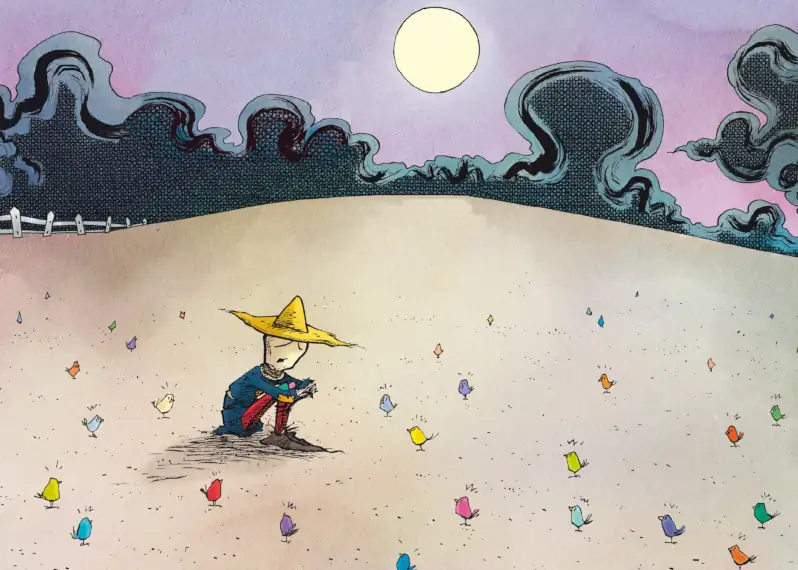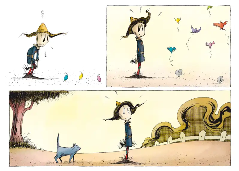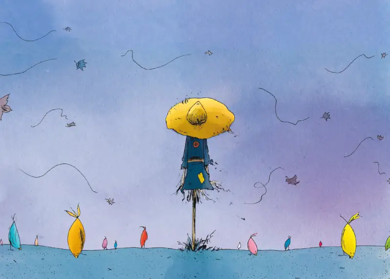 Il était une fois, dans une campagne lointaine, un fermier qui, pour éviter que des oiseaux ne viennent picorer toutes ses semailles, installa dans son champ un épouvantail