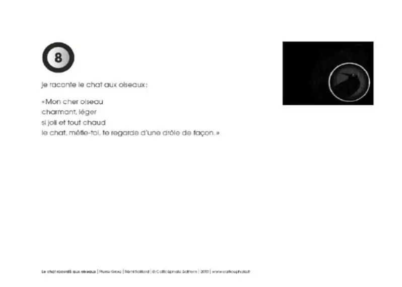 L’auteur joue avec les mots comme le félin joue avec sa proie. Il entretient une relation directe avec les personnages, leur donne des conseils et utilise son pouvoir d’écriture pour intervenir et protéger l’oiseau. Un beau kamishibaï pour découvrir la poésie et réfléchir sur les sons.