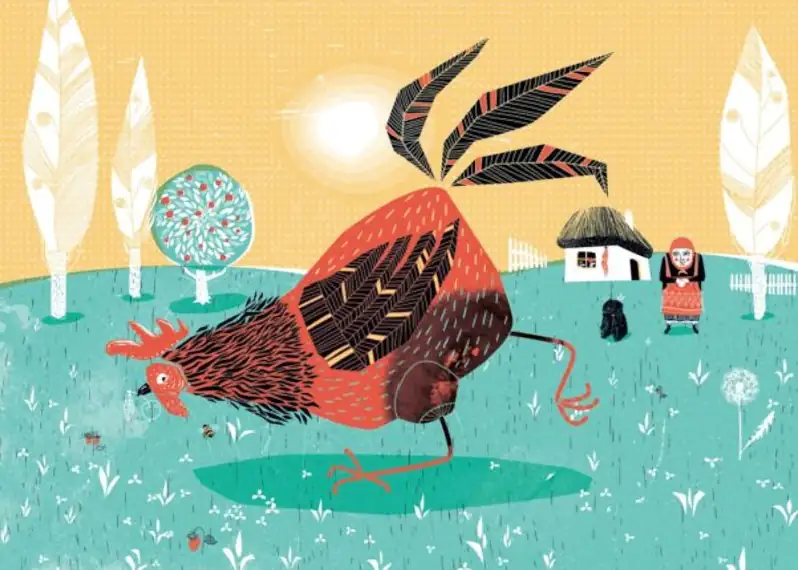 Un adaptation du conte roumain le coq et la bourse aux deux pièces d’or.