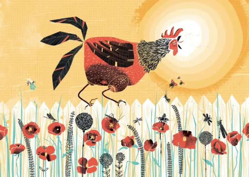 Dans un pays d’Orient, un coq dévoué à sa pauvre maîtresse, trouva un jour une piécette en diamant.