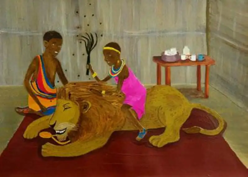 Crédit visuel : Planche extraite du kamishibai Etrange aventure au Pays des Massaïs, illustré par Béatrice Valimard, Kamishibaïs Editions